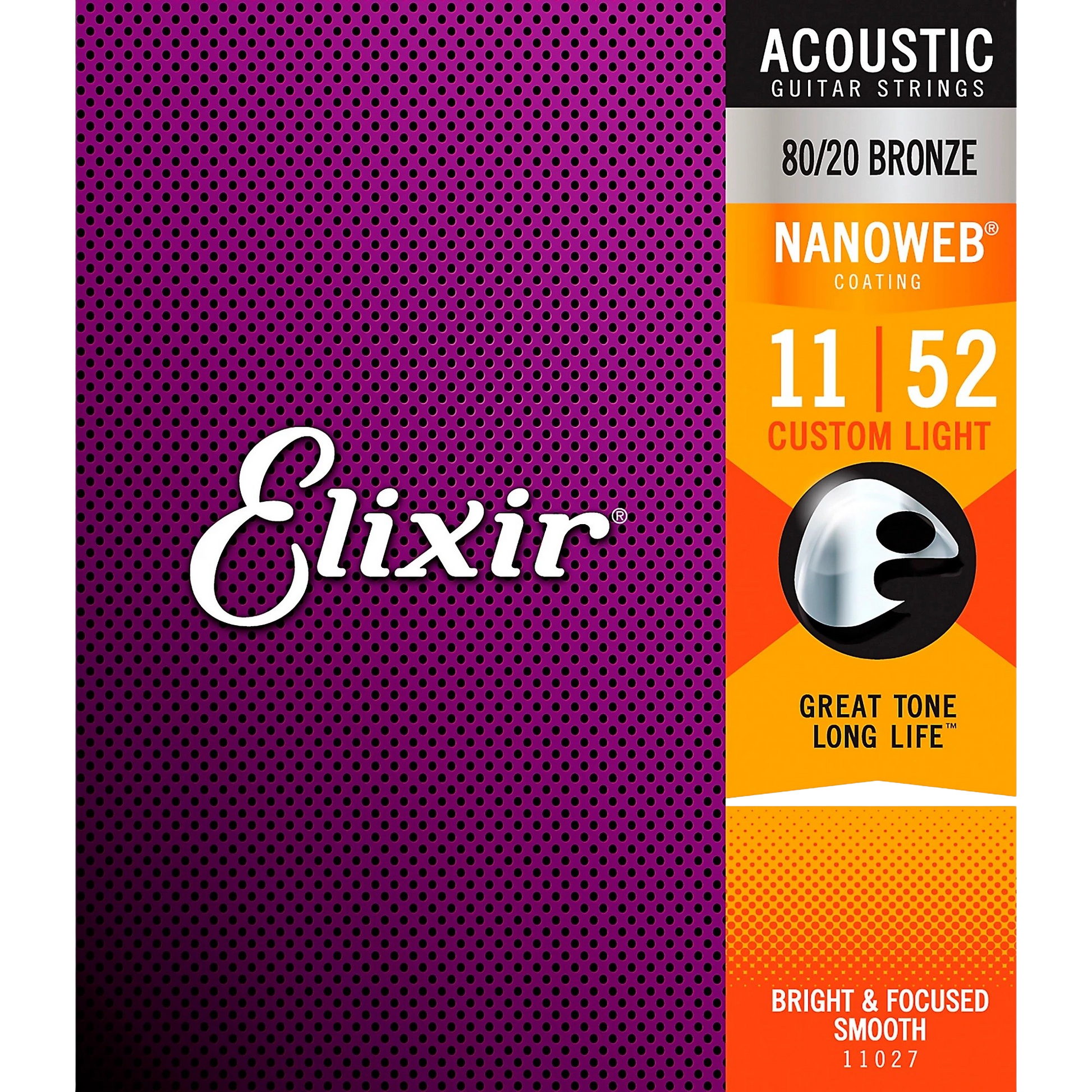 Elixir 80/20 Bronze Acoustic Guitar Strings with NANOWEB Coating, Custom Light (11-52)